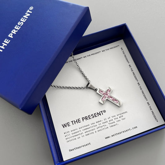 We The Present Cohen Pink Crystal Cross